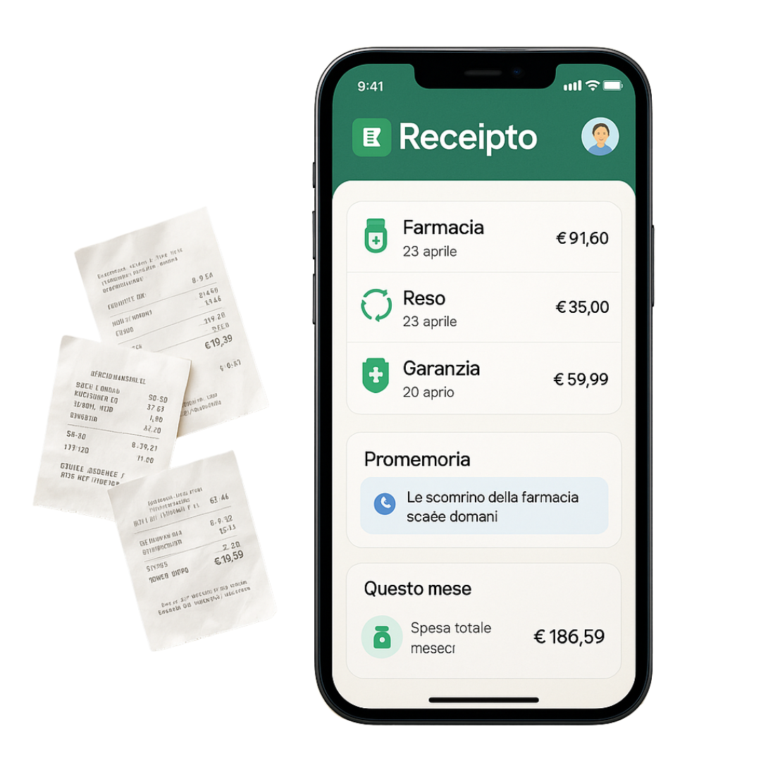 Receipto raccoglie e organizza in automatico i tuoi scontrini in un’unica app semplice e intuitiva.
